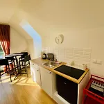 A pleasant dining experience includes a fully furnished kitchen with an electric kettle, a fridge, and a stovetop. Enjoy your stay at a terrace.
